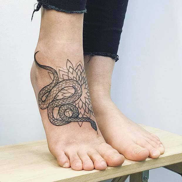 TRENDY SNAKE FOOT TATTOO IDEA