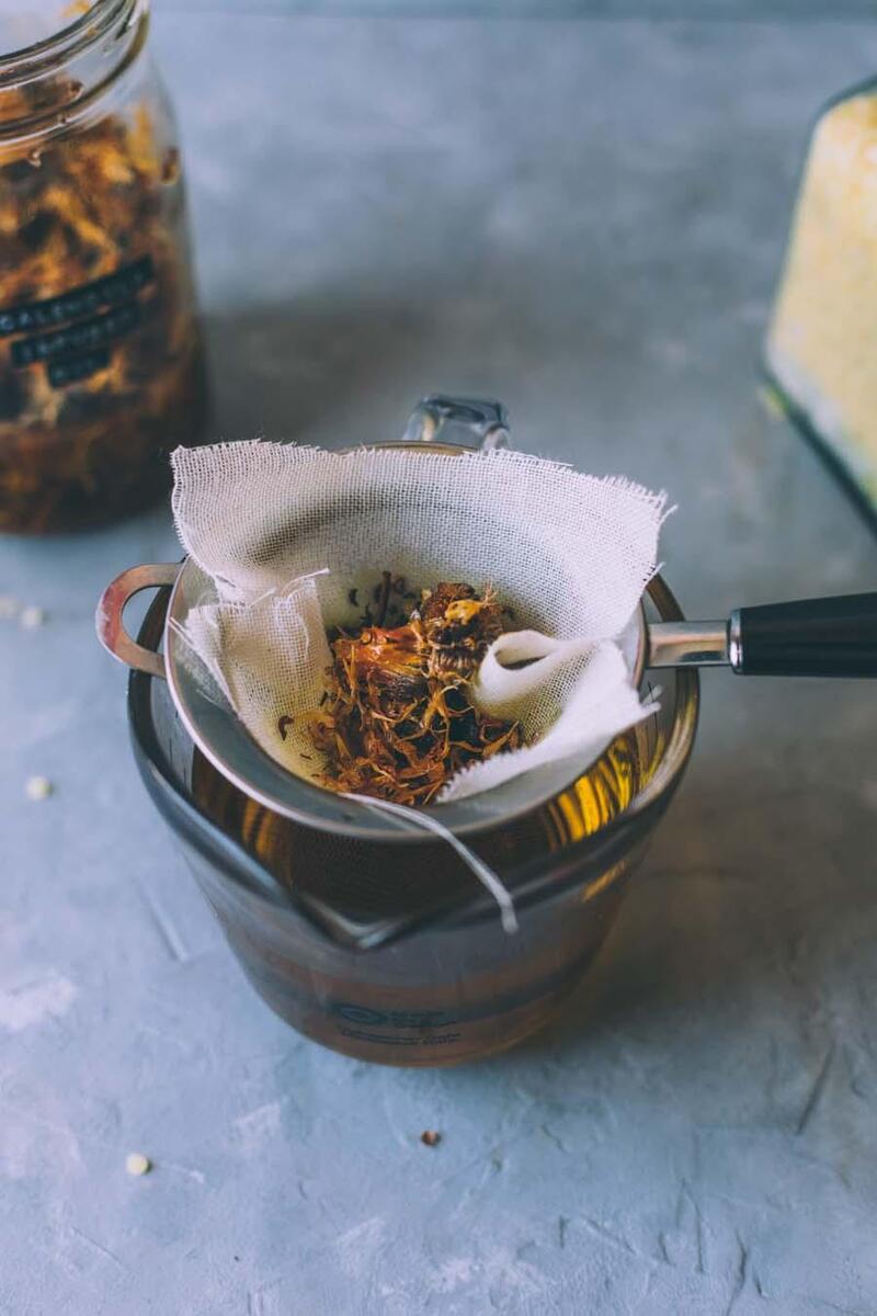 For this recipe, I’ve created a calendula-infused oil, but you can get creative and use any skin-safe flower to infuse. I’ve made oils with calendula, rose, and lavender, and each one has an incredible fragrance! I believe in using what you already have, so there are plenty of options.