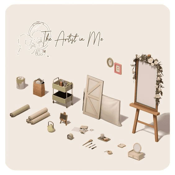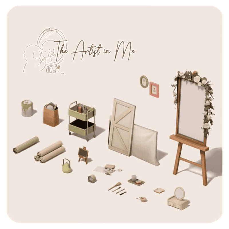 The “Artist Clutter” custom content (CC) for Sims 4 by Aira is great for Sims who love to create art. This pack includes items like paintbrushes, sketchbooks, easels, and paint tubes. You can place these art supplies in your Sims’ studios, bedrooms, or living rooms to make the space feel creative. Aira’s artist clutter adds an artistic and inspiring touch to any room. This CC pack helps make your Sims’ homes look like a true artist’s workspace.