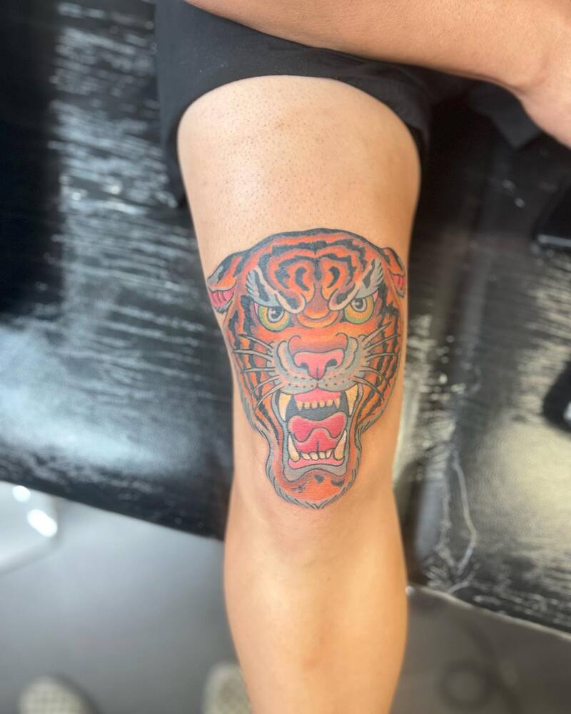 A tiger above-the-knee tattoo can hold various meanings, shaped by an individual’s personality and perspective. However, at its core, this tattoo symbolizes courage and strength. For those who trust in themselves and embody power and confidence, getting a tiger tattoo is a beautiful way to express these qualities, serving as a personal reminder and a statement to the world about your resilience and determination.