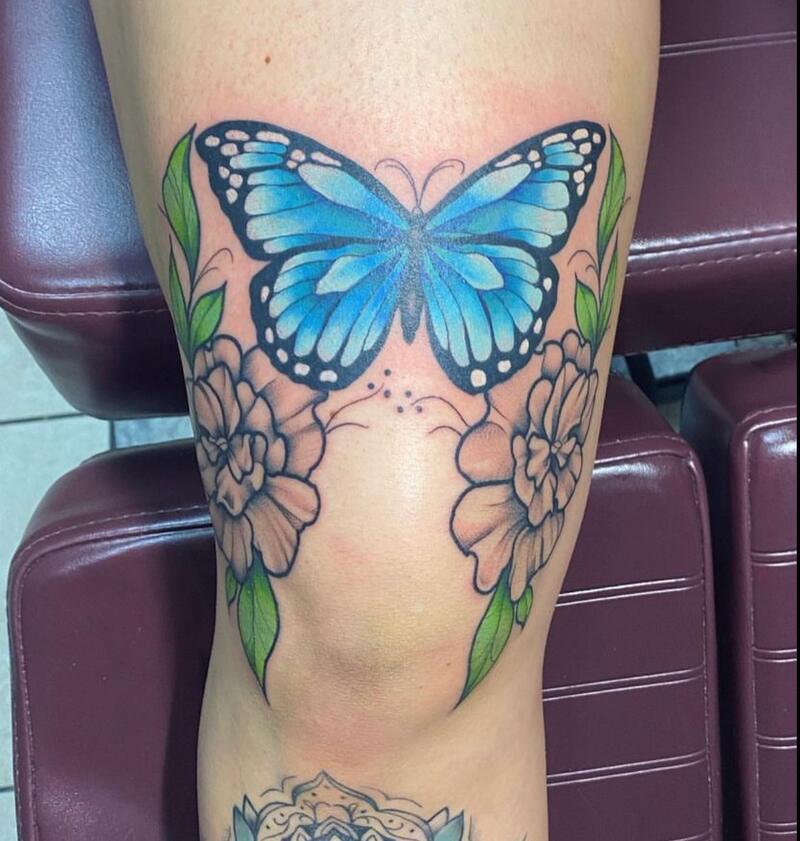 VIBRANT BUTTERFLY KNEE TATTOO: COLORFUL AND GRACEFUL