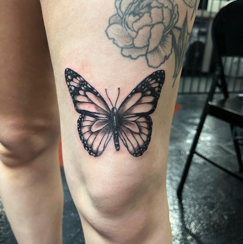 Discover the perfect symbol of elegance and transformation with a black butterfly tattoo above your knee. This meaningful design encapsulates beauty while representing a powerful journey of personal growth. With its striking aesthetic, a black butterfly tattoo serves as a reminder of your resilience and evolution. Explore the possibilities today and let your tattoo reflect your unique journey!