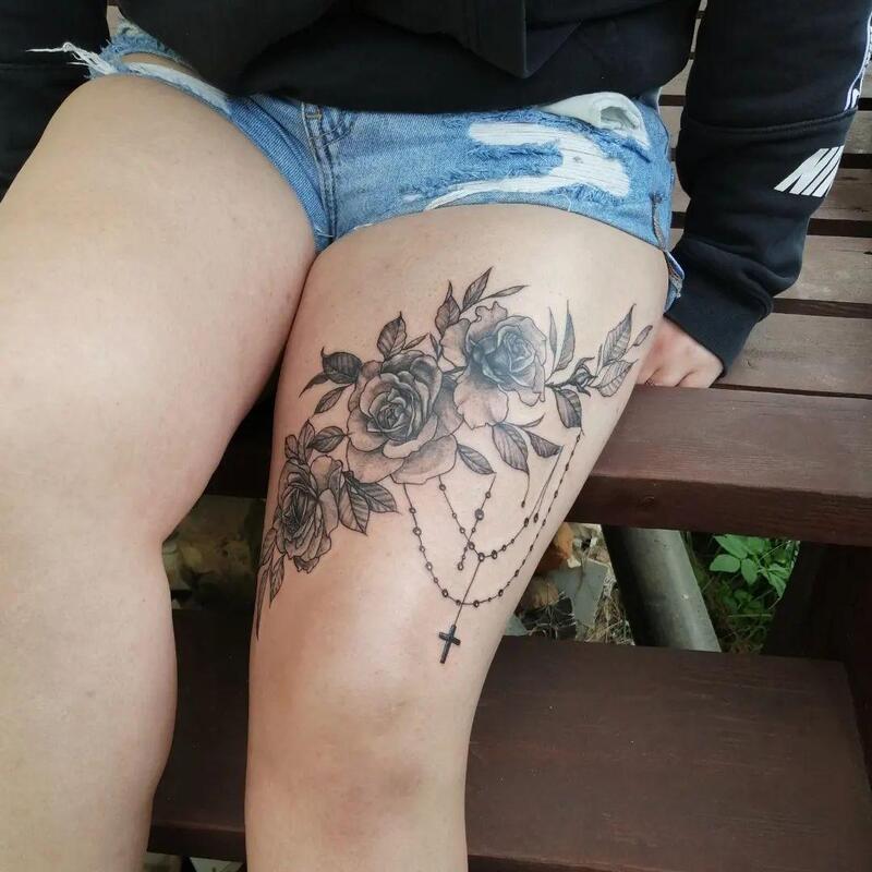 Floral designs are among the most popular tattoo choices for women, often inked in various locations on the body. Flowers symbolize love, making them a perfect above-the-knee tattoo to express your affection for your partner. This placement allows you to beautifully showcase your feelings, celebrating the bond you share while adding a touch of elegance to your style.