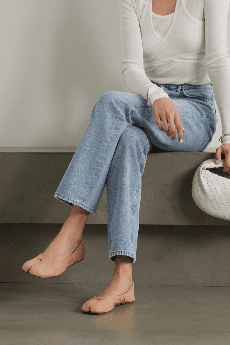 While our list focuses on classic square-toe flats, it would be remiss not to mention the iconic Maison Margiela Tabi split-toe ballet flats. A true fashion maverick, the Tabi design features a split toe inspired by traditional Japanese socks. Launched in 1989, it’s become a signature element of the Margiela brand, instantly recognizable and undeniably fashion-forward. Made from soft nappa leather, these flats offer a unique blend of comfort and avant-garde style. If you’re looking for a statement piece that pushes the boundaries of classic ballet flats, the Maison Margiela Tabi is a legendary option.