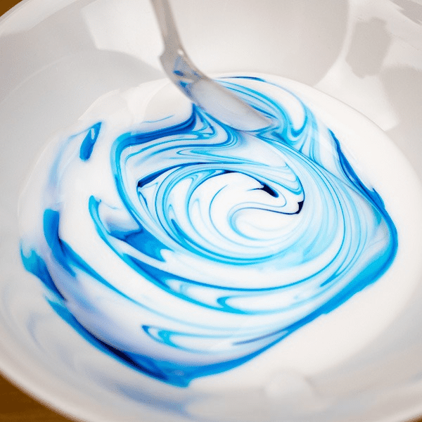 - Mix ¼ cup of glue with 1 teaspoon of baking soda and a few drops of food coloring.