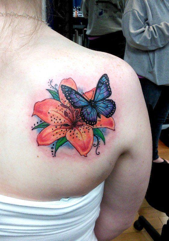 Have you ever seen something as vibrant as this? The range of blue shades is stunning, adding highlights without relying heavily on white. As with many realistic 3D tattoos, the three-dimensional effect is achieved by incorporating shadows beneath the rose and butterflies.