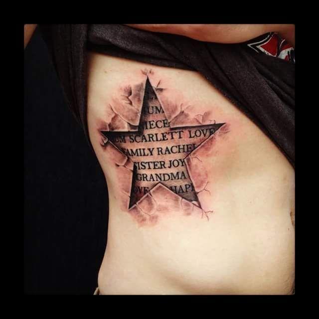The ripped skin tattoo features a star-shaped symbol that appears to be tearing through the skin on the arm. The design is meticulously detailed, with expertly placed shadows and highlights that create a striking 3D effect.