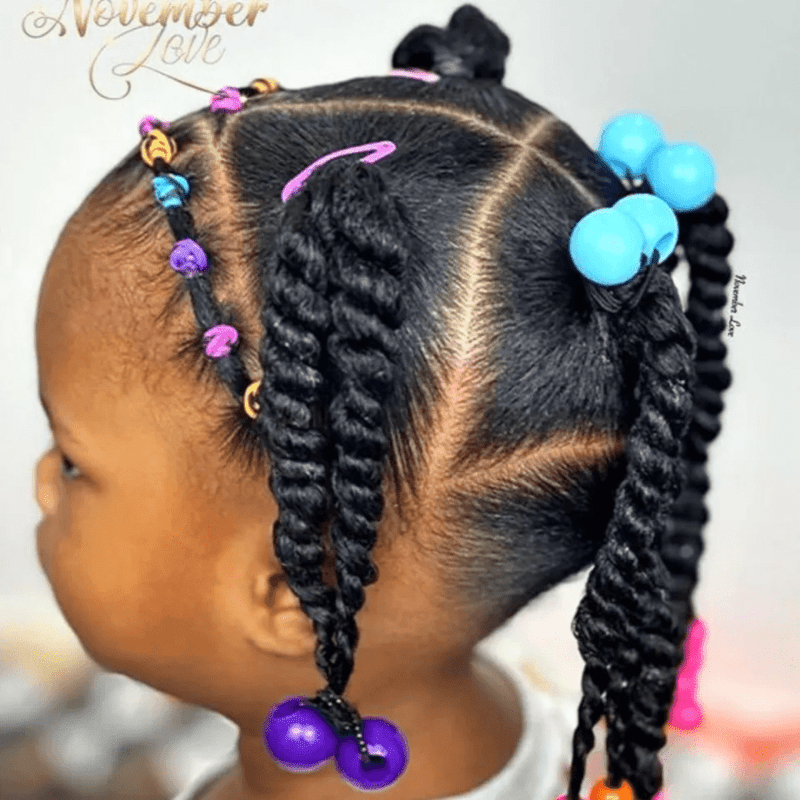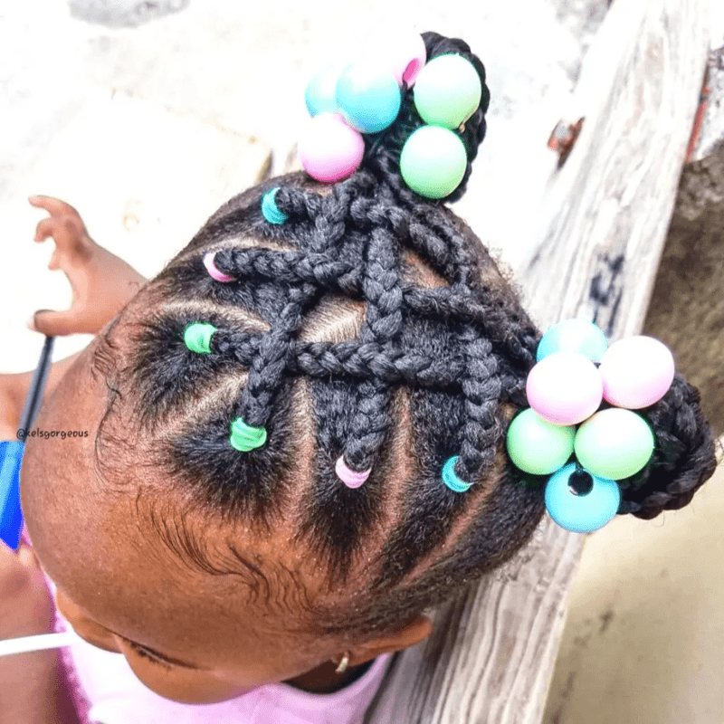 Rubber bands are an excellent way to infuse vibrant color into your hairstyle. If you have long natural hair that’s been braided—or if you’ve had long braids added—consider incorporating rubber bands for a fun ‘90s vibe. Position the elastics at various intervals along your braids, not just at the ends. To complete the look, add hair clips in equally bright colors for a cohesive style. Plus, since the rubber bands are easily removable, this versatile option allows you to refresh your braids and switch up your look for the day.