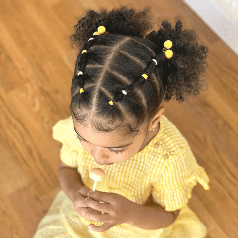 Why settle for one bun when you can have two? Take your double buns or puffs to the next level by adding rubber bands for extra flair. This playful hairstyle is perfect for a festival or day party, giving off a fun and cheerful vibe. The rubber-band sections help keep your hair flat, making your buns stand out even more. To enhance the fun factor, swap out plain black or white elastics for colorful ones that add to the joyful look.