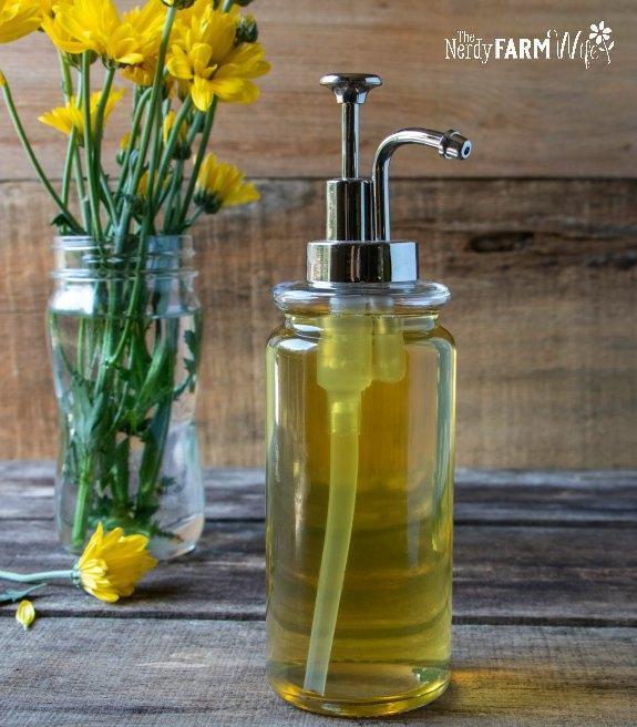 Avoid diluting with herbal teas or milk, as these can cause the soap to spoil more quickly—unless they were cooked into the recipe, like in the Calendula & Coconut Liquid Soap below.