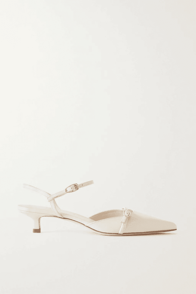 A key feature is the low, 35mm heel. This kitten heel strikes a balance between providing a slight lift and remaining incredibly comfortable for all-day wear. The Melia pumps also feature a slender buckle strap that wraps around the ankle, adding a touch of detail and ensuring a secure fit. Overall, these Aeyde pumps are a versatile choice that can be dressed up or down. They pair well with cropped tailoring for a polished work look or elevate a casual outfit of jeans and a tee.