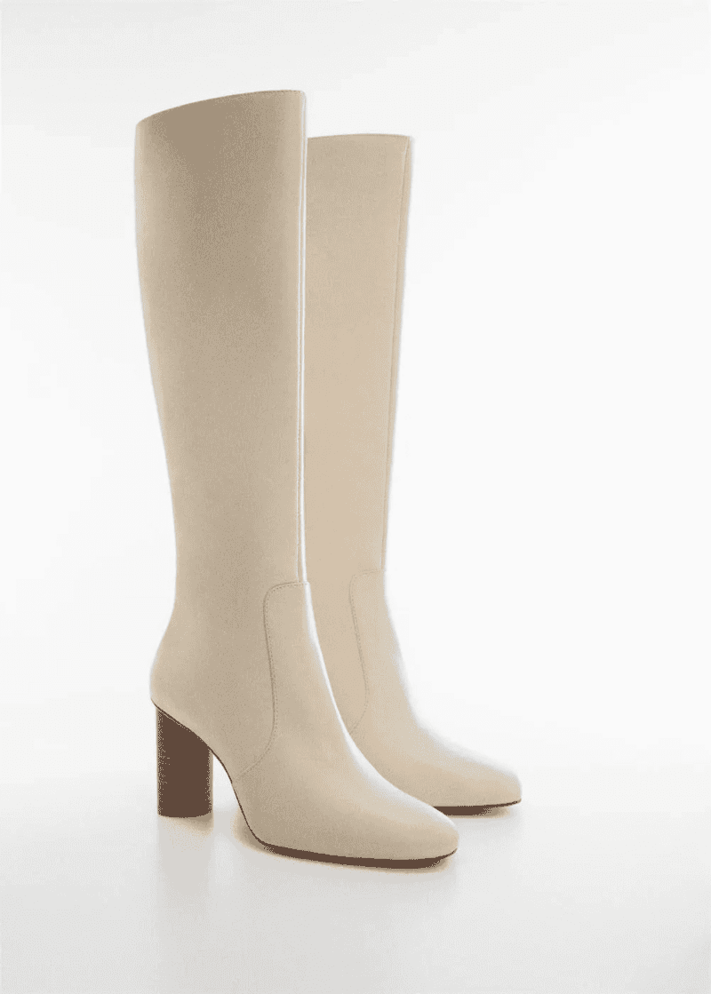 A rectangular heel provides a stable base and likely comes in a mid-range height, around 3-5 inches, for a comfortable lift. For easy on and off wear, the boots feature a side zip closure. Offered in a variety of colors like black or brown, Mango’s Round-Toe Leather Boots are a great choice for everyday wear. They pair well with jeans and a sweater for a casual look or can be dressed up with a skirt or dress.