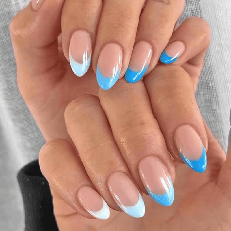 NAVY BLUE AND LIGHTER BLUE FRENCH TIP