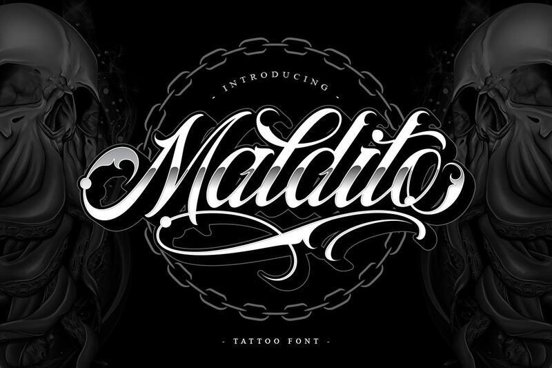 Consider the Maldito font if you’re looking for a legible yet impactful option that still makes a strong impression. With its modern twist on traditional tattoo styles, this font strikes the perfect balance between boldness and readability. It’s ideal for adding a stylish edge to everything from urban typography to logos, creating designs that are both striking and sophisticated. Whether for tattoos, branding, or graphic design, Maldito brings a fresh, contemporary flair while staying true to classic tattoo aesthetics.