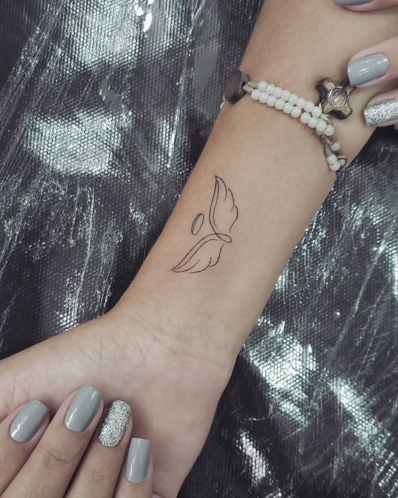 This delicate tattoo design is perfect for those seeking more than just a heart. It can be inked alone or accompanied by a line extending from the heart’s endpoint. At a slight distance, the line breaks, leaving a small gap. This design exudes a really cool and stylish vibe.