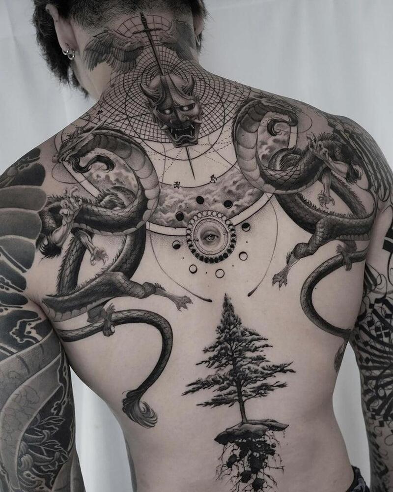The back is like a vast canvas waiting for artwork. With ample space from top to bottom, it allows for incredible creativity—whether you want a large, intricate piece that spans the entire back or a smaller design on the shoulder blades or lower back. The flat, wide area of the back is perfect for detailed designs that might not fit or look as good in other locations. Plus, back tattoos offer a level of discretion in day-to-day life, making them a great choice for those who prefer their ink to remain hidden most of the time.