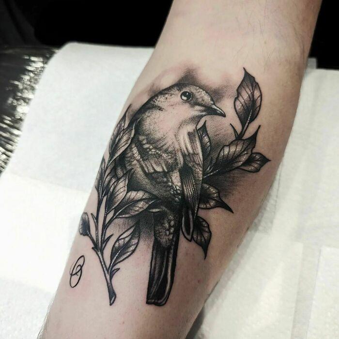 Stippled Realism Bird Tattoo