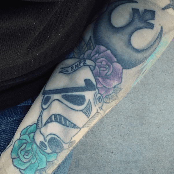 The classic charm of roses paired with flowing script creates a full sleeve design that appeals to both romantics and those who appreciate timeless elegance. With intricate black shading and subtle highlights, the roses seem almost lifelike, while the script adds a personal touch, either reflecting family ties or serving as a reminder of one’s guiding principles.