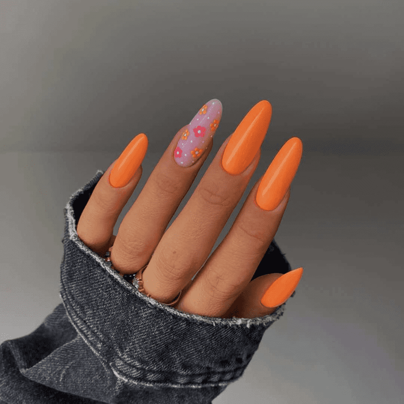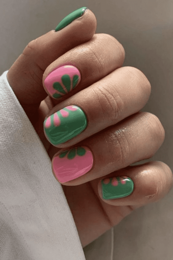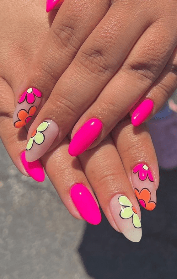 For added realism, use a fine brush to create subtle shadows on your flowers and leaves. Seal your miniature world with a glossy topcoat for a final touch of magic. These “mini garden” nails are perfect for nature lovers who want to take a piece of the outdoors with them wherever they go. This summer flower nail design is really suitable for those who are looking for simplicity but still attractiveness.