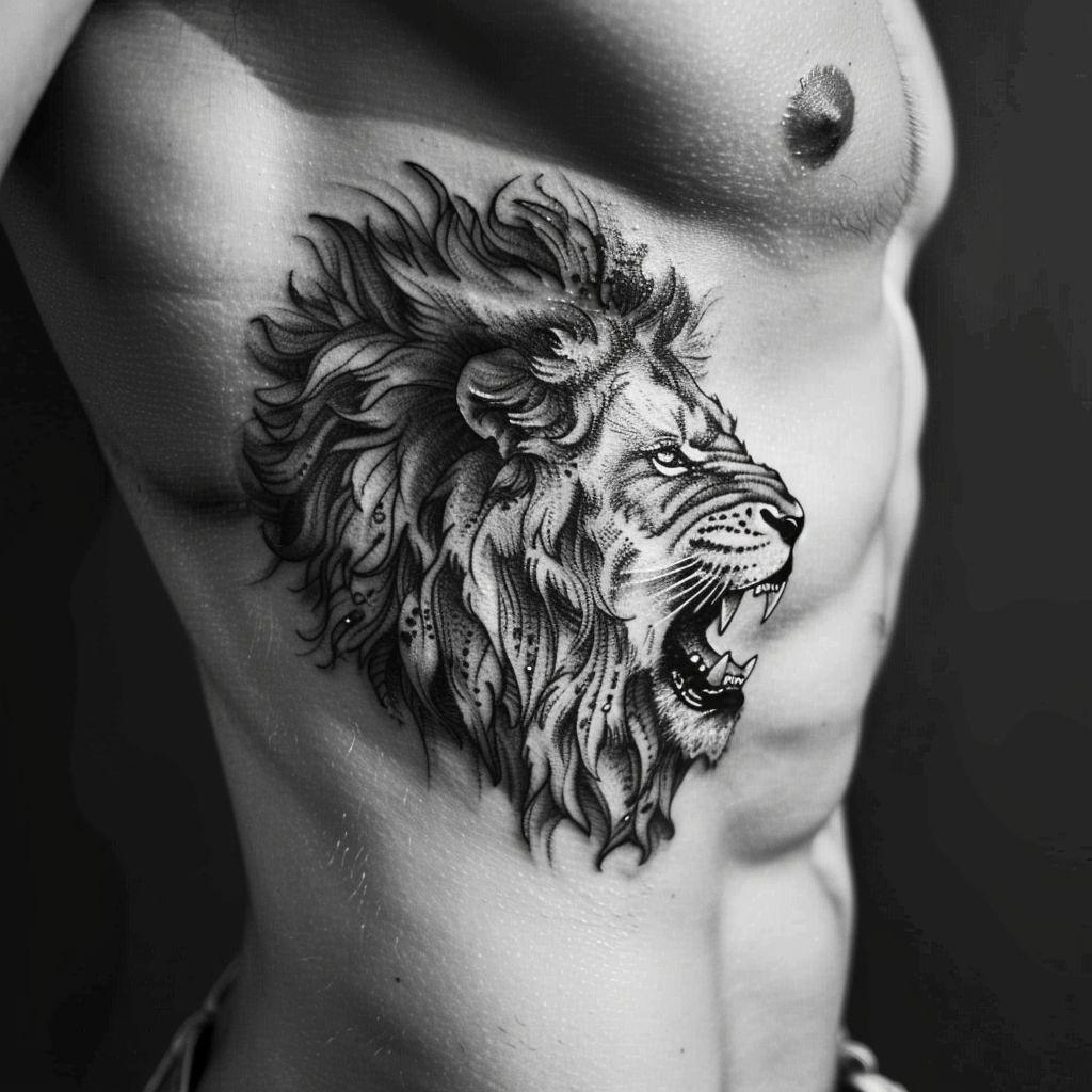 The face of a roaring lion comes to life on the side, its flowing mane aligning with the body’s curves. A symbol of power, courage, and authority, this tattoo is perfect for those who wish to embody the strength and leadership of the king of the jungle.