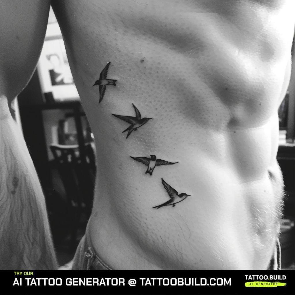 A flock of swallows takes flight along the side, their wings spread wide. Traditionally linked to sailors, swallows symbolize hope and the safe return home. This tattoo reflects the desire for adventure while cherishing the importance of returning to where one feels most loved.