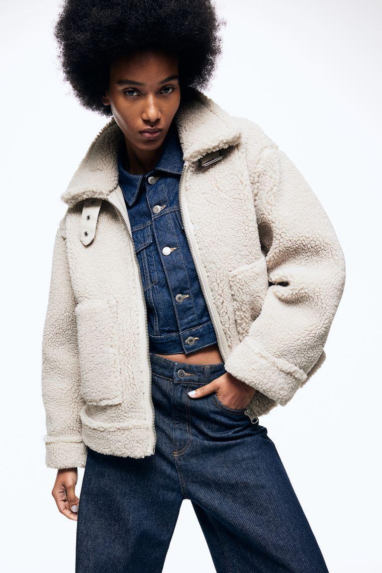 Zara’s faux shearling creation appears much more luxurious than its price suggests. With a funnel neck, buckle accents, and white shearling trims, it serves as an outstanding choice for casual weekends in the city.
