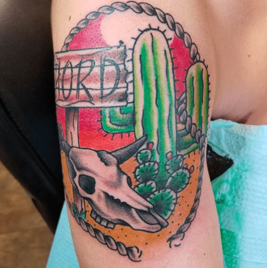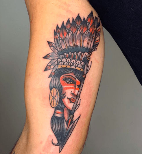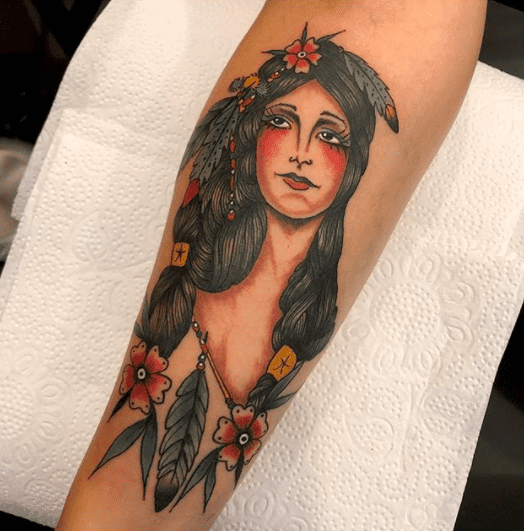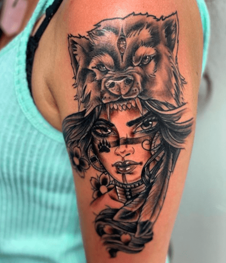 Featuring butterflies and flowers in a band around the arm, this tattoo is usually done in multiple colors, adding a lively and eye-catching effect. It suits all skin tones and works well in small to medium sizes. Ideal for those who want to celebrate their love for nature, this design effortlessly blends beauty and personal expression.