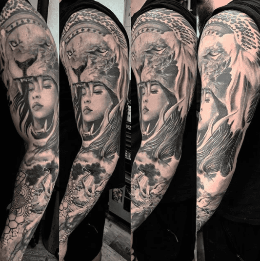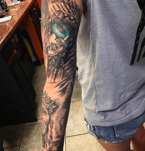 A landscape band tattoo, as the name suggests, intricately captures the essence of nature. This design often features elements such as mountains, moons, trees, and birds, creating a scenic panorama around the arm. It’s ideal for individuals deeply connected to the natural world and eager to express their profound love for it.