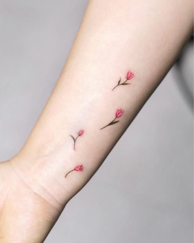 The pink lily represents femininity and strength. With its soft yet powerful symbolism, this design is ideal for those looking to showcase their feminine energy. Its minimalist style makes it a versatile and fashionable tattoo that can be paired with other designs like butterflies or daisies for a cohesive look.