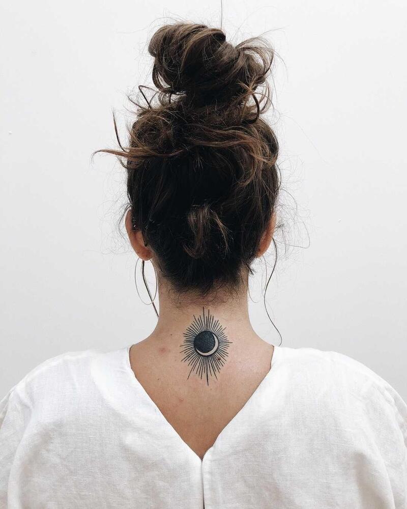 BACK OF THE NECK MOON TATTOO