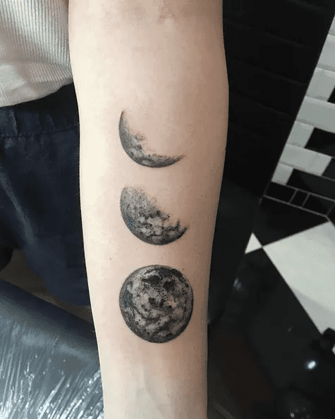 If you lean towards a more minimalist aesthetic, this tattoo idea might be the perfect fit for you. Adorning the arm, it showcases four distinct moon phases, ranging from a crescent to a full moon. The impeccable design of the moons, adorned with beautiful shading, adds a touch of artistry to the simplicity of the overall composition.