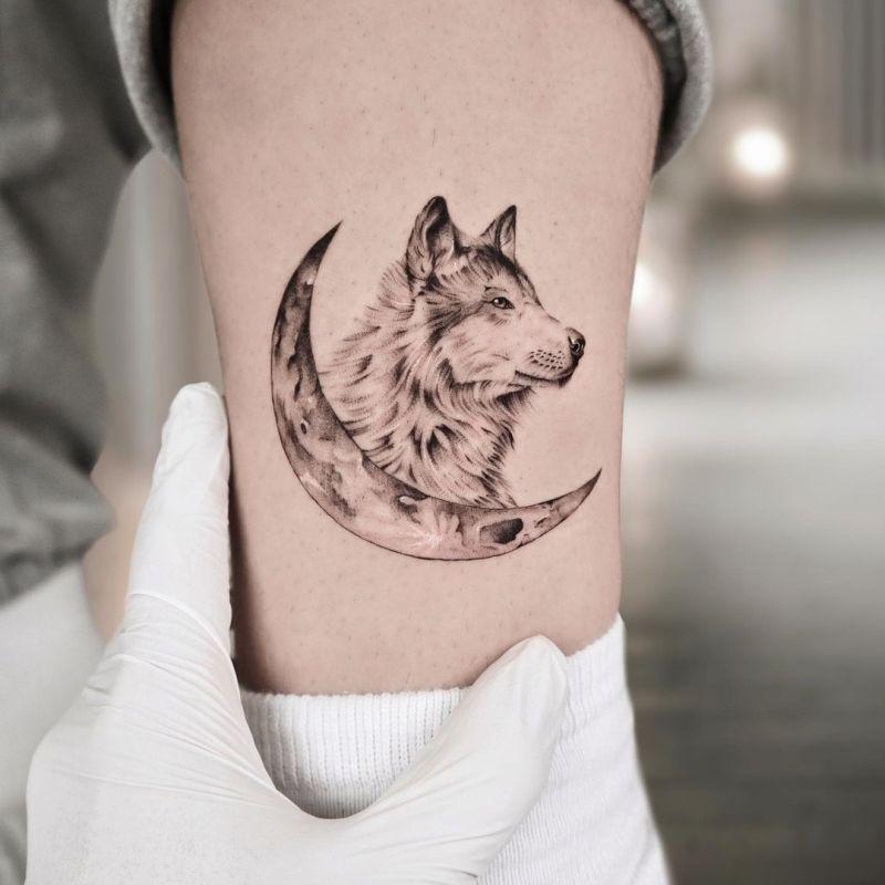 MOON AND WOLF TATTOO