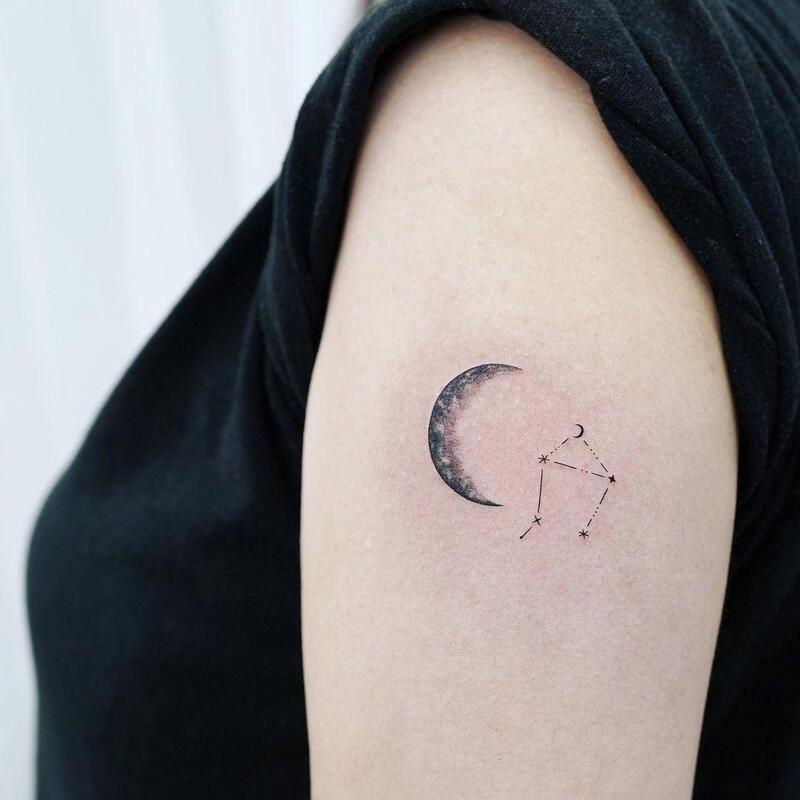Behold a truly beautiful design showcasing three distinct moon phases – from full to crescent – against the backdrop of a celestial star constellation. This captivating piece is particularly cherished for its evocative representation of the night sky, creating a poetic narrative on the canvas of your skin. The versatility of this idea allows you to select any star constellation, with the option of incorporating a zodiac design for a deeply personal and astrologically significant touch.