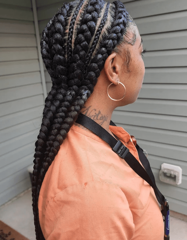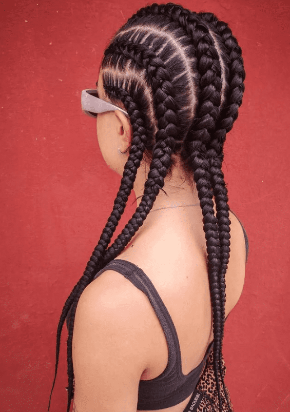 While jumbo cornrows might resemble dutch braids, they offer a distinct and eye-catching twist. Unlike dutch braids which result in two prominent braids, jumbo cornrows create multiple, thick braids that frame the face beautifully. These chunky braids not only save you precious styling and maintenance time but also offer a low-maintenance, effortless look that suits various occasions.