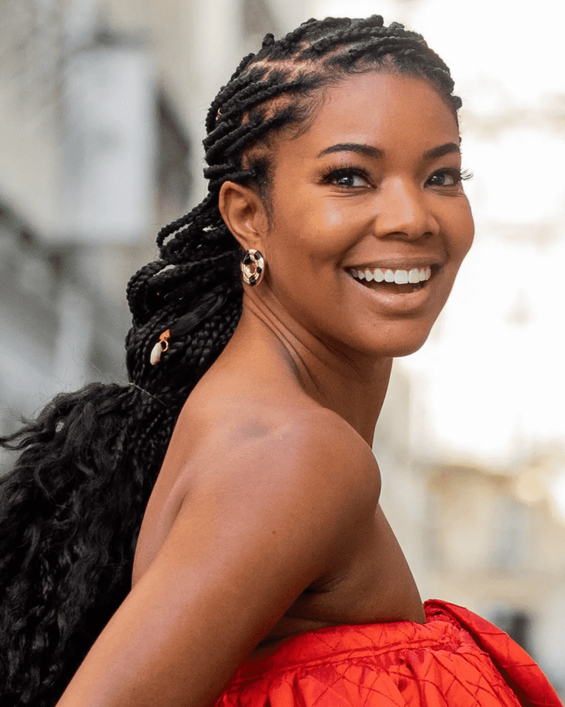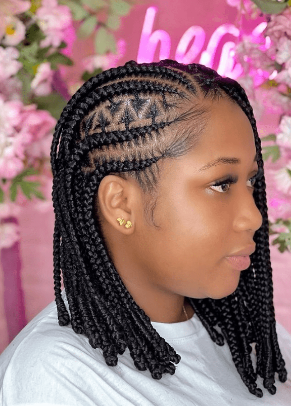 Don’t let the intricate design fool you – flip-over braids are the hottest new box braid style, not a geometry test! While the combination of cornrows, box braids, and optional curly pieces creates a mesmerizing pattern, you don’t need a mathematical mind to rock this look. However, be prepared to seek out a skilled braider, as the technique requires expertise to achieve the stunning, eye-catching result.