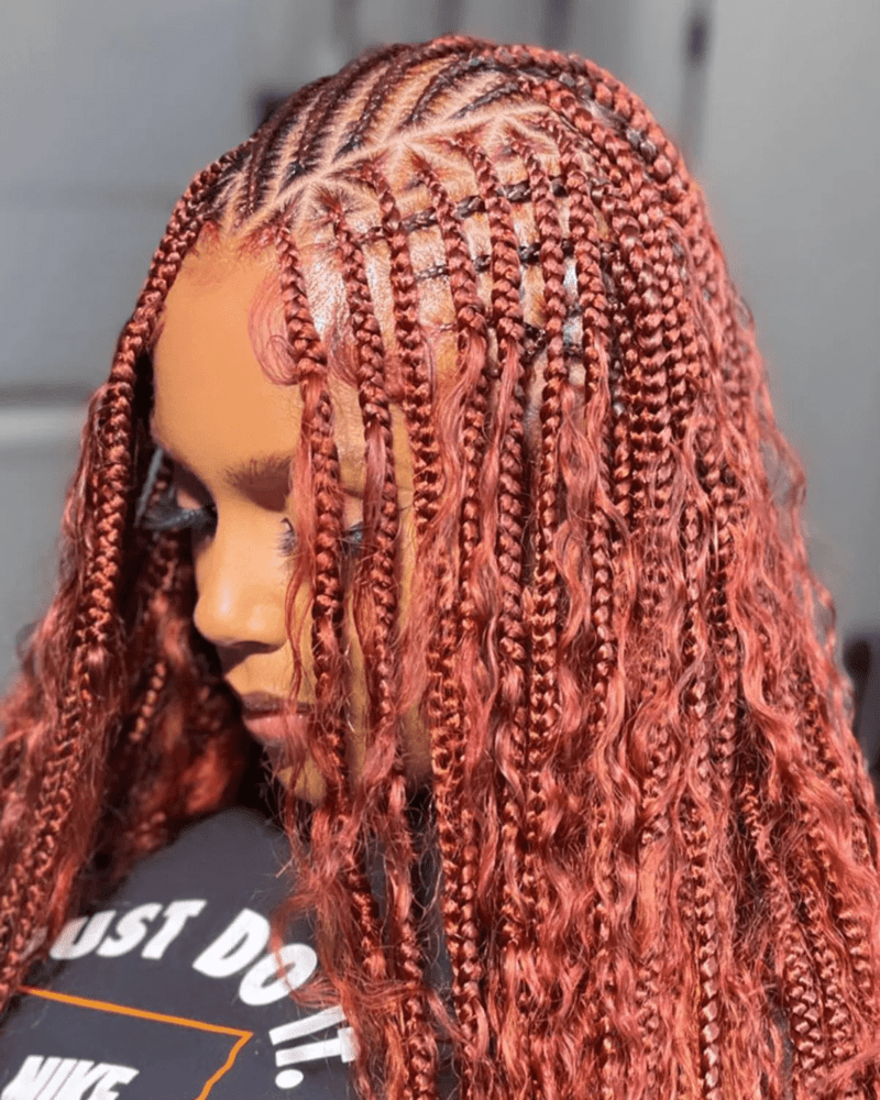 Half cornrows, half curls with beads is a hairstyle that consistently reigns supreme in the world of trendy looks. The captivating combination of intricate cornrow patterns framing the face seamlessly blends into long, flowing natural waves, creating a stunning visual contrast. Adding beads to the braids injects a touch of personality and flair, making the style even more eye-catching. For an extra touch of charm, the curls can be further styled into soft locs, adding a playful and joyful dimension to the overall look. This hairstyle is guaranteed to turn heads and garner appreciation for its unique blend of beauty and versatility.