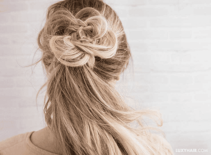 Match the gorgeous flowers your significant other gives you this Valentine’s Day with a stunning floral ponytail! This style features braids and twists arranged to mimic a rosette, adding a touch of femininity. If you have layered hair, clip in a few wefts from your Luxy Hair extensions at the back to enhance the flower effect. Complete the look by pairing this boho hairstyle with a white lace-detailed dress.
