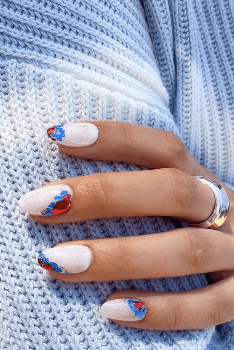 Celebrate the Fourth of July in style with colorful foil nail art! Apply a base coat in a neutral color like nude or white to your nails. Then, cut small pieces of red, white, and blue foil and press them gently onto your nails in a random pattern. For a more secure application, use nail glue to adhere the foil. Seal the design with a clear top coat for a festive and eye-catching manicure!