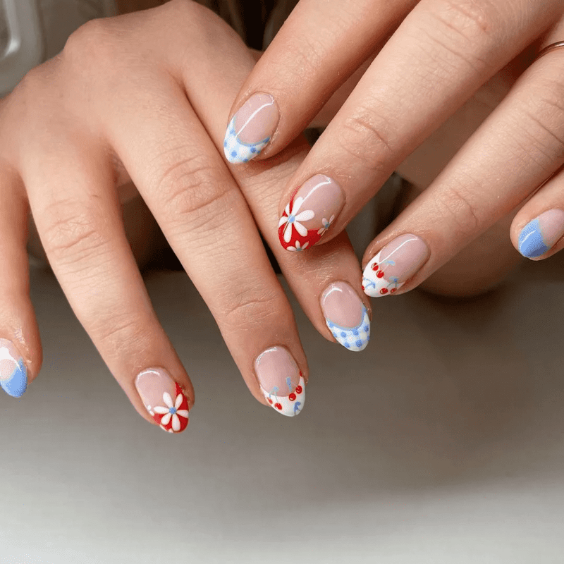 Floral fireworks combine the delicate beauty of flowers with the vibrant bursts of color in fireworks. Imagine soft watercolor floral designs blooming on your nails, with pops of glitter or neon polish mimicking the sparks and bursts of a fireworks display. You could even create firework tendrils reaching out from the flowers, for a truly unique and eye-catching design.