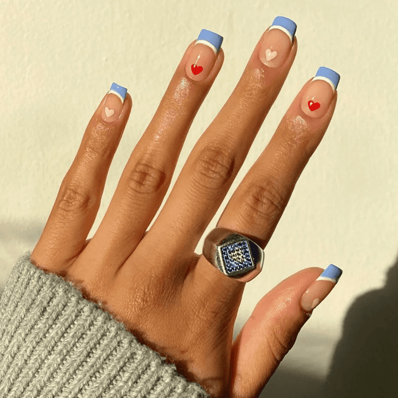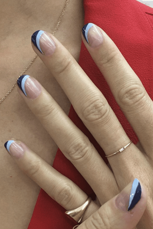 A double-french manicure takes the classic French manicure to a whole new level! Instead of the usual single white tip, it features two thin lines in contrasting colors outlining the tips of your nails. This creates a modern and stylish look that’s perfect for any occasion, but it can also be easily adapted for a festive Fourth of July mani. Just play around with your color choices! Try a red and blue combo for a patriotic look, or go for a more subtle approach with metallic colors or glitter accents.