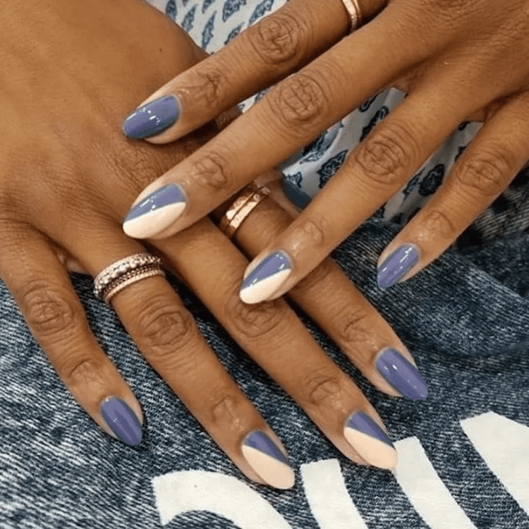 Slanted French manicure is a modern twist on the classic French tip design. Instead of the traditional straight-across line at the tip of the nail, the slanted French features a diagonal line, creating an asymmetrical and edgy look. It’s a chic and contemporary style that allows you to play with different color combinations and nail shapes. Perfect for those who love to experiment with their nail art, the slanted French manicure exudes sophistication with a touch of boldness.