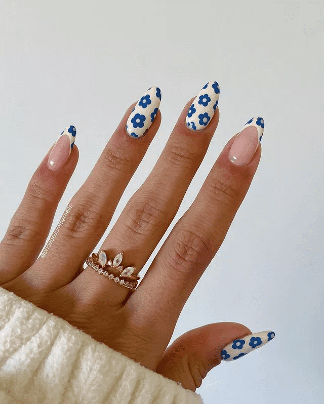 Channel a dreamy, ethereal vibe with blue marble nails! Paint your nails a base coat in a light blue or white. Then, using a nail art brush and various shades of blue polish, create swirling marble patterns on each nail. For a touch of extra dimension, add thin streaks of white or silver polish to accentuate the marble effect.