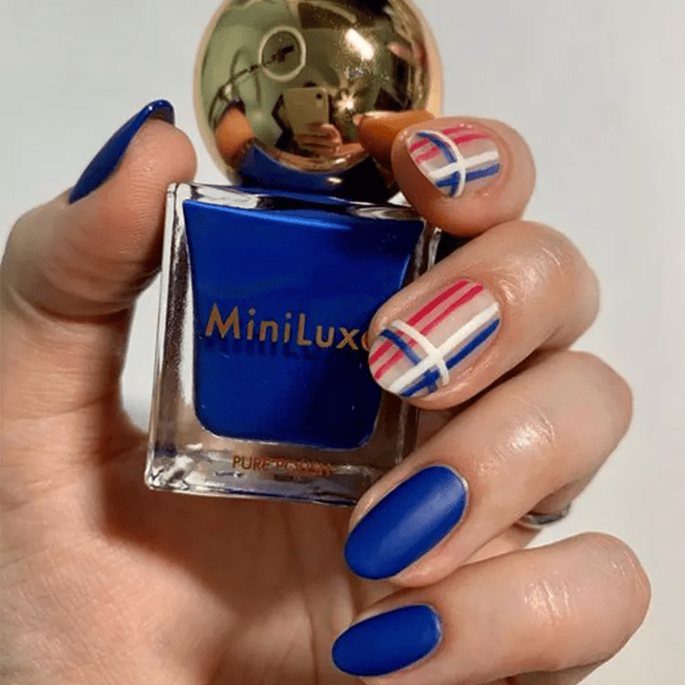 Achieve a chic and sophisticated look with sleek stripes! Paint your nails a base coat in a neutral color, like nude or white. Then, grab a thin nail art brush and choose contrasting polishes (think red, white, and blue for a patriotic vibe). Carefully paint thin stripes vertically or horizontally across your nails. You can use one or two colors for a classic look, or get creative and use multiple colors for a more interesting design.
