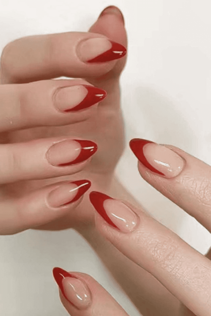 Add a fiery twist to the classic French manicure with red French nails! Paint your nails a neutral base coat, like nude or light pink. Then, instead of the traditional white tip, use a bold red polish to create a thin line across the tips of your nails. This elegant design is perfect for those who love the timeless appeal of French nails with a touch of sassy flair.