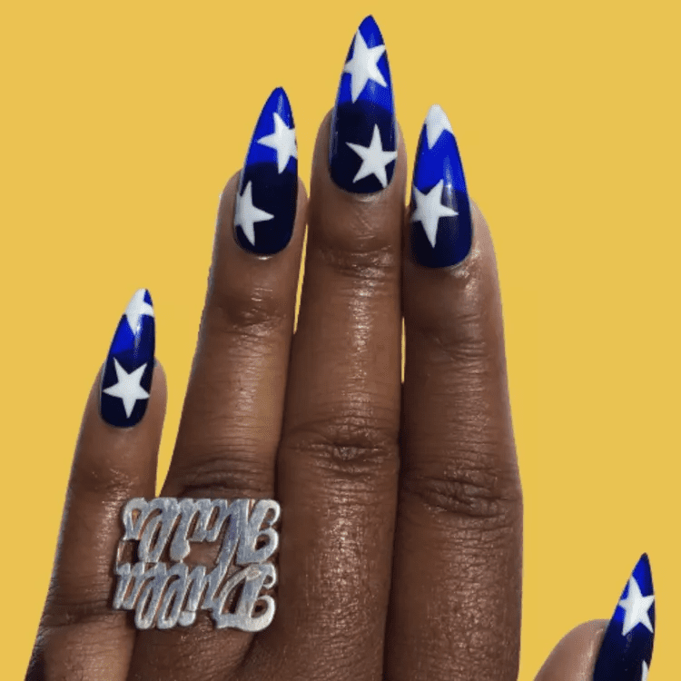 A Star Spangled Mani is a classic and festive way to celebrate Independence Day! It typically incorporates the red, white, and blue colors of the American flag and stars. You can create this design in many ways, like painting your nails all white and then using a dotting tool to add red and blue stars. Or, you could alternate red and white stripes across your nails, with a single blue star as an accent. No matter how you choose to design it, a Star Spangled Mani is a timeless way to show your American pride!