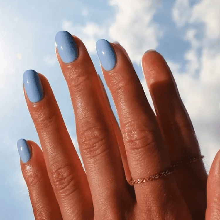 Achieve a clean and refreshing look with a monochromatic baby blue manicure. Paint your nails a base coat in a light, baby blue polish. This delicate shade is perfect for summer and adds a touch of sophistication to any outfit. It’s a simple yet versatile choice that’s perfect for those who prefer a more understated look.