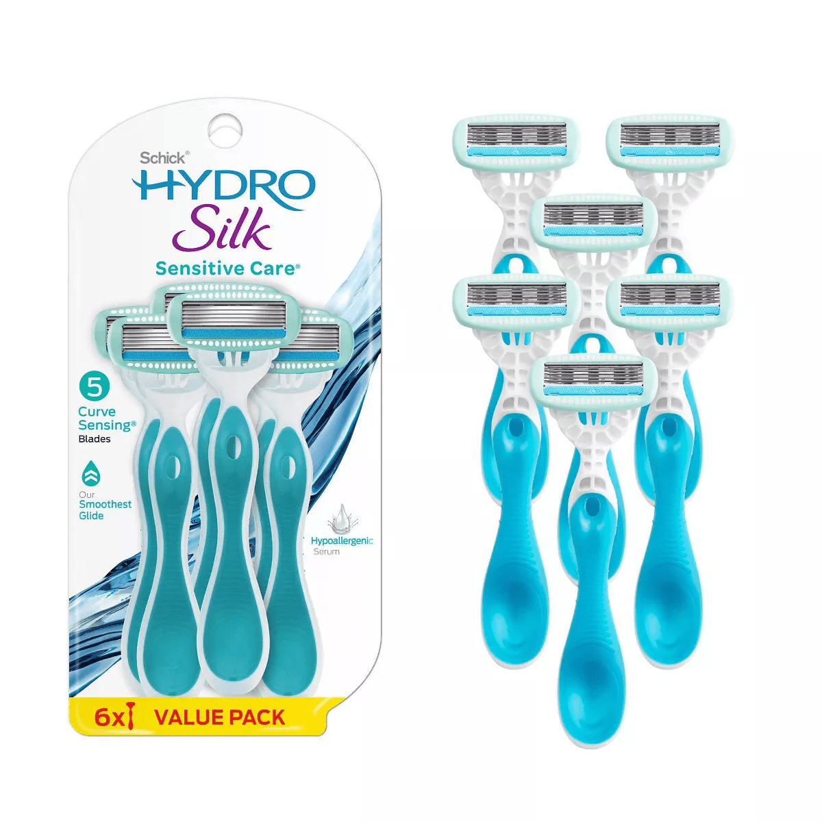 The Schick Hydro Silk Sensitive Skin razor works like the others – it smoothly moves along your legs and clears away hair in just one or two swipes. It has a bendy head, so you can keep the handle straight against your leg while the five blades do their job. This is handy for tricky spots like the back of your knees. The handle has a unique shape with a slope and rise in front of the razor head. However, there are some drawbacks. The handle is a bit awkward to hold, and the wall holder it comes with may not stay in place.