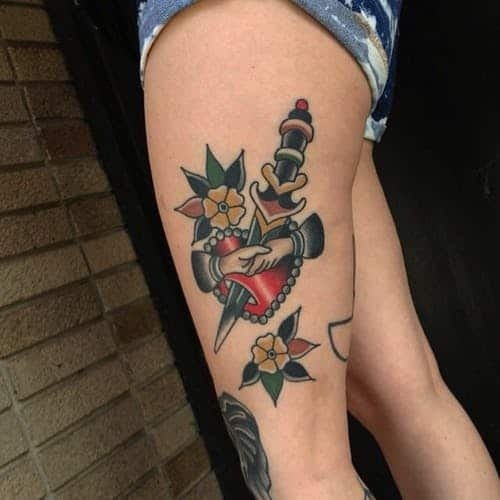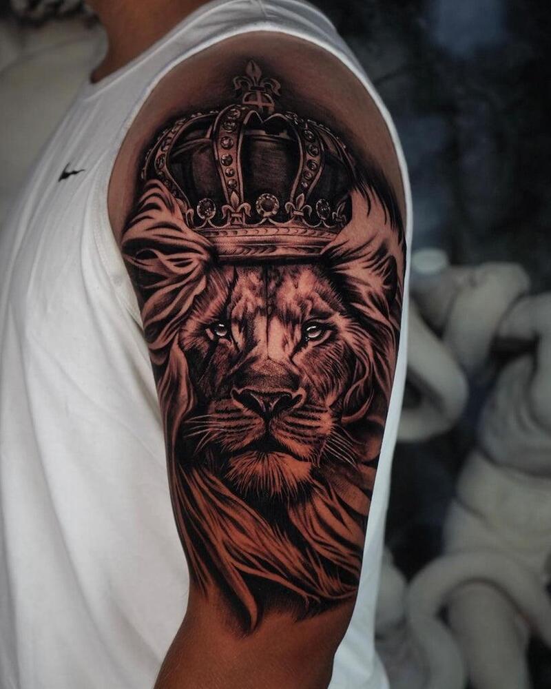 This warrior-inspired tattoo, featuring armor and a lion, is a bold choice for men seeking a masculine design. It’s popular among those who appreciate Celtic or Spartan-inspired tattoos.