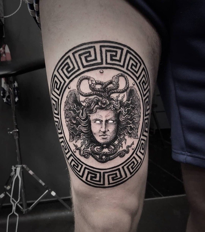 This shoulder tattoo makes a bold statement with its vintage flair, drawing inspiration from Greek mythology. It’s perfect for history enthusiasts. Men who appreciate knight-themed designs and prefer their tattoos to exude a mystical vibe will especially love this piece.