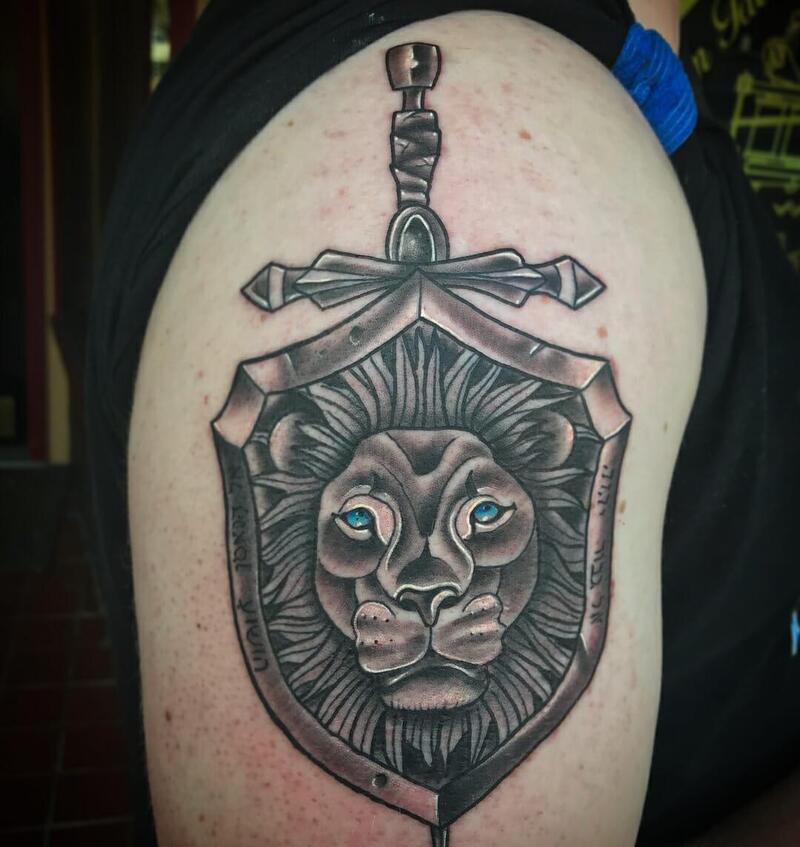 AMAZING LION SHIELD TATTOO